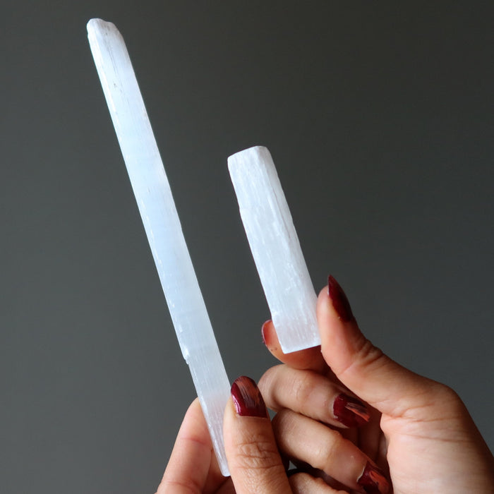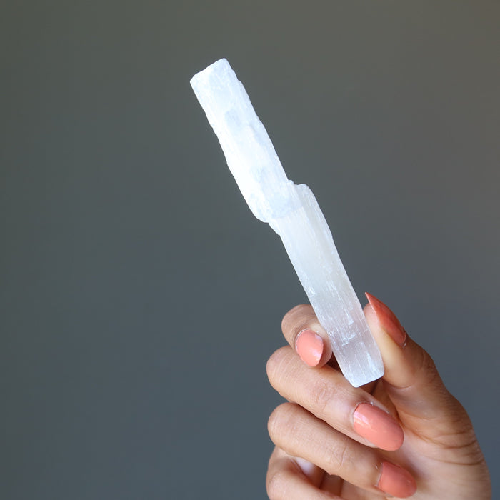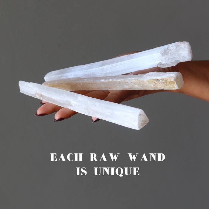 This Selenite wand is a must-have stone for powerful crystal healing and aura sealing. Are you feeling tired, vulnerable, or violated? Use this long, deluxe, raw Selenite wand to close the gaps that are causing your aura to leak. Help yourself and your clients gain control of life once again. The Selenite wand is a crucial crystal for your healing toolbox.