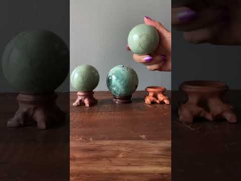 Your crystal ball features natural and untreated Serpentine. The Green Potion variety of Serpentine is creamier than other types. It looks as though a green sea monster is brewing magic in a swampy lake. Each sphere is full of surprises, no piece like the other. Showcase your crystal ball on a display stand.