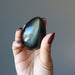 Sheen Obsidian appears black in a normal setting, so don't be shocked when you receive a black stone. When you view it under a strong flashlight, the colors come alive at the correct angles of light.