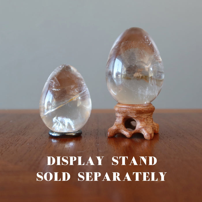 Your new egg is polished from natural and untreated Smoky Quartz. This is a clear stone with a light smoky brown tint, shiny planes, and occasional mineral inclusions. Each is unique. Showcase your crystal on a display stand.