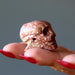 Your new skull bead is carved from natural Soapstone. This is a red and white stone. It is drilled horizontally through the top to hang as jewelry or can stand on its own for display.