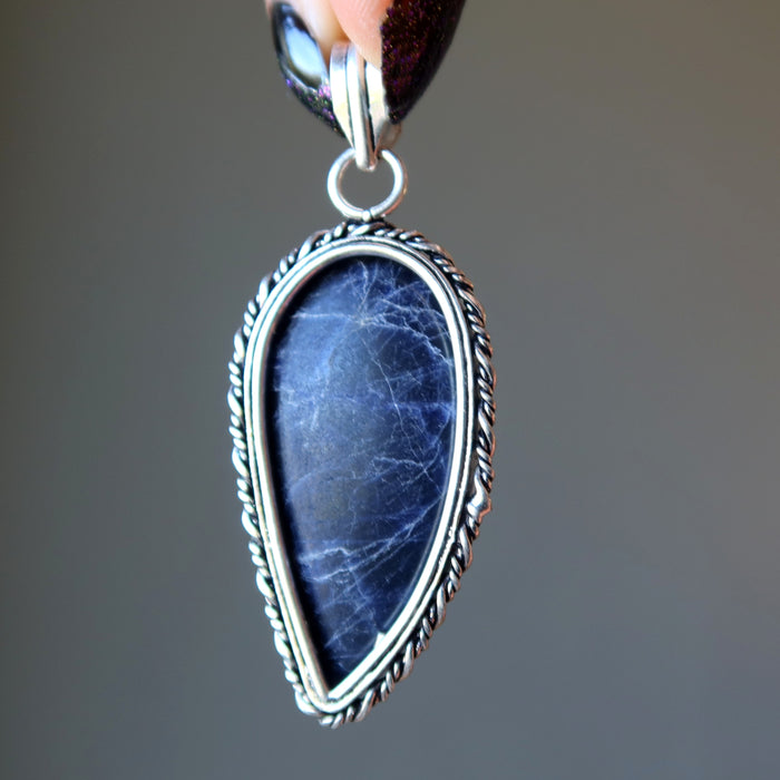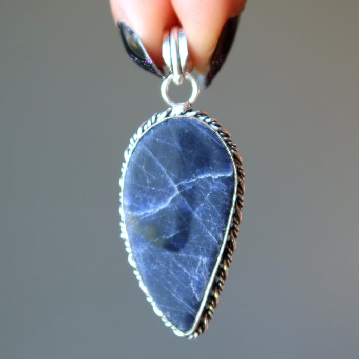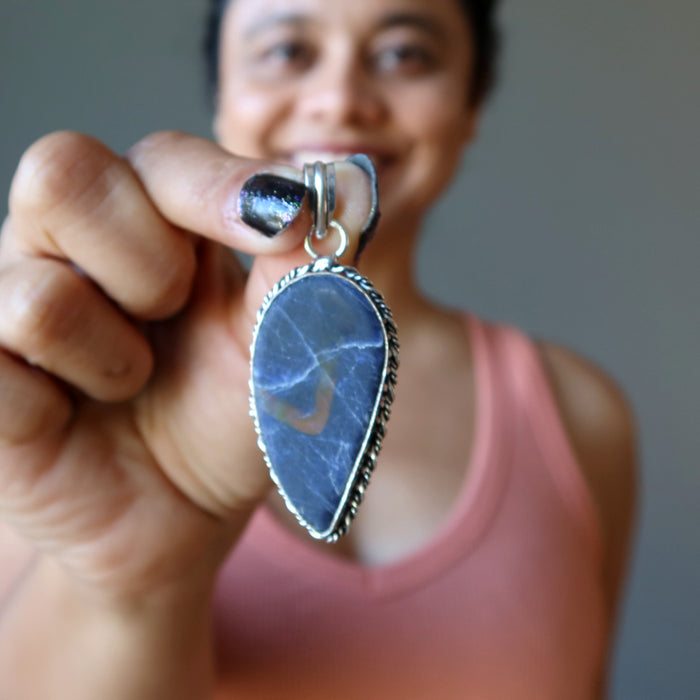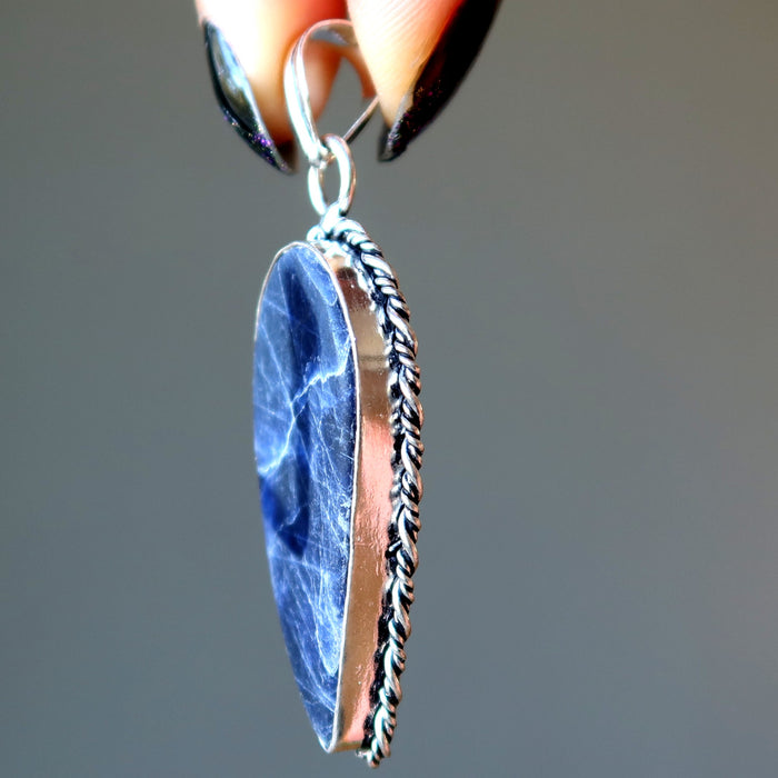 • The wing of the angel keeps your spirit high. This inspirational Sodalite pendant features a blue stone that resembles an angel's wing. Set in sterling silver, it is the jewel that shall guide you toward better territories.