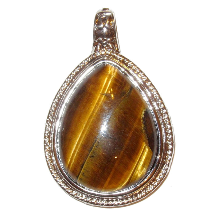 Your new pendant features natural and untreated Tigers Eye stone. This is a golden brown stone showing an iridescent surface sheen. The Tigers Eye is polished into a drop shape and set in a silver-plated pendant with a magnetic clasp bail. Each stone is unique. Add a necklace chain.