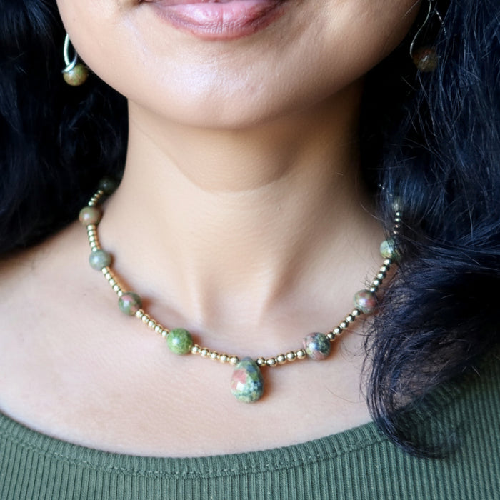 Unakite Necklace Dreamer Designer Stone Beaded Brass