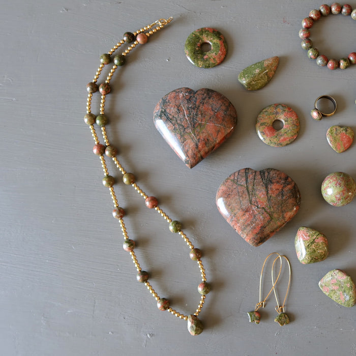 This Unakite necklace speaks to the Creator within. Design the life of your dreams with the optimistic energy of Unakite gemstones cheering you forward.