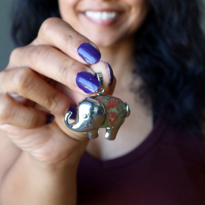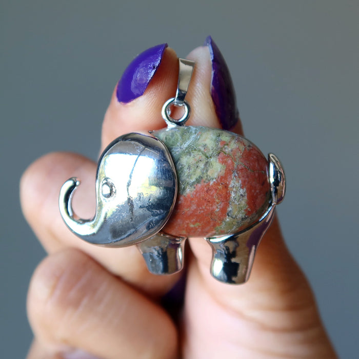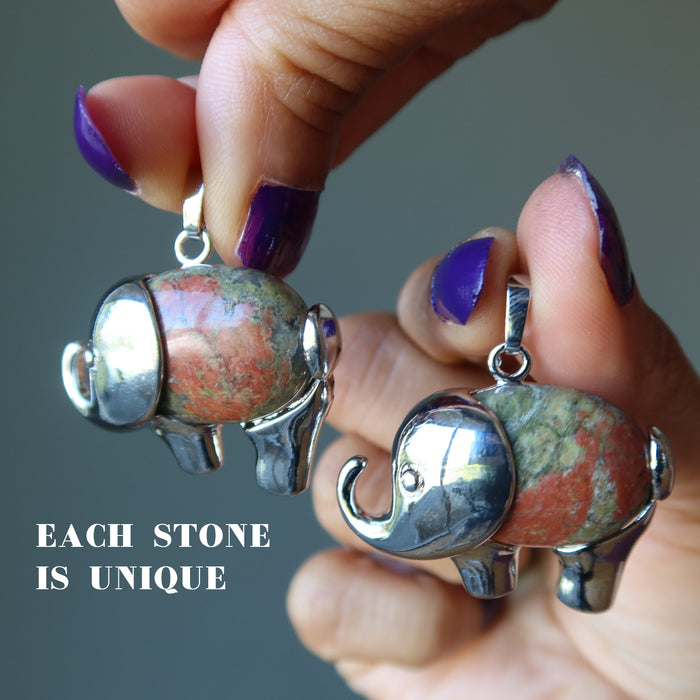 Unakite Pendant Lucky Elephant Stone Silver